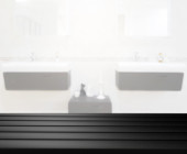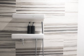 biały umywalka i lustro na ścianie w miejscu publicznym