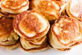 Gotowania naleśniki na czarnej patelni z olejem