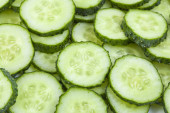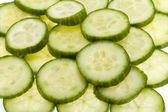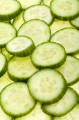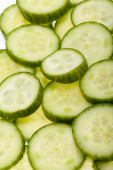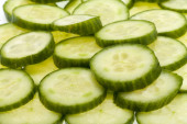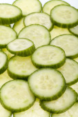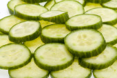 świeżo pociętego na plasterki ogórka na białym tle