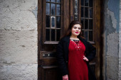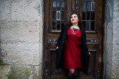 Zdjęcie "Atrakcyjna kobieta slim czerwony elegancka bluzka i czarna spódnica pozowanie, siedząc na schodach. Fotografia mody." może być wykorzystywane do celów osobistych i komercyjnych zgodnie z warunkami zakupionej licencji Royalty-free. Obraz jest dostępny do pobrania w jakości wysokiej rozdzielczości do 5760x3840.