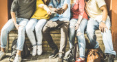 Zdjęcie "Milenium znajomych szczęśliwy skoki i doping przeciwko cegły ściany w mieście - przyjaźń styl życia i zespół koncepcji z młodzieżą millenial zabawy razem - Teal i pomarańczowy filtr vintage" może być wykorzystywane do celów osobistych i komercyjnych zgodnie z warunkami zakupionej licencji Royalty-free. Obraz jest dostępny do pobrania w jakości wysokiej rozdzielczości do 5760x3840.
