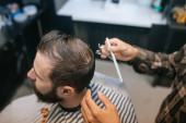 przycięte zdjęcie Fryzjer Dokonywanie broda mężczyzna w salonie
