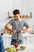 Zdjęcie "dorosły człowiek, dodając olej w Sałatka w kuchni" może być wykorzystywane do celów osobistych i komercyjnych zgodnie z warunkami zakupionej licencji Royalty-free. Obraz jest dostępny do pobrania w jakości wysokiej rozdzielczości do 5760x3840.