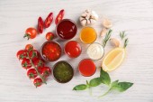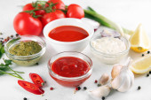Zdjęcie "Inne smaczne sosy w miski na stół szary" może być wykorzystywane do celów osobistych i komercyjnych zgodnie z warunkami zakupionej licencji Royalty-free. Obraz jest dostępny do pobrania w jakości wysokiej rozdzielczości do 5760x3840.