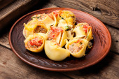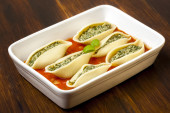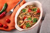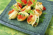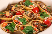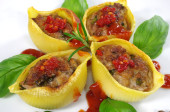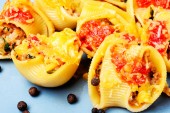 Włoski styl Nadziewane muszle makaronowe z mięsem. Dania kuchni włoskiej