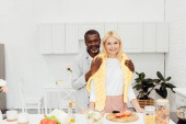 uśmiechający się blondynka z ramionami skrzyżowane stojący w kuchni