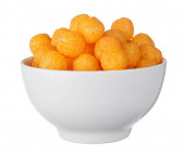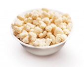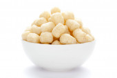 Klosz pełnego kulek waniliowych zbóż na białym tle