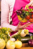 Kobieta ręka trzyma papryka pyszne zdrowe diety warzyw prezentacji dieta jedzenie w dwóch kolorach