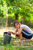 kobieta z kosz pełen jabłek