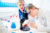 Zdjęcie "Młody naukowiec pracuje w nowoczesnym laboratorium biologiczne młodych kobiet badania naukowiec przygotowanie i analizując szkiełka mikroskopowe w laboratorium badawcze." może być wykorzystywane do celów osobistych i komercyjnych zgodnie z warunkami zakupionej licencji Royalty-free. Obraz jest dostępny do pobrania w jakości wysokiej rozdzielczości do 5760x3840.
