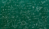 Formuły matematyczne napisane białą kredą na tablicy