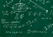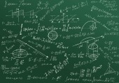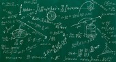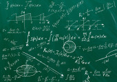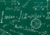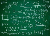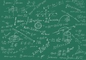 Formuły matematyczne napisane białą kredą na tablicy