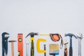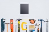 przycięte strzał kobiety za pomocą laptopa z różnych narzędzi, leżącego na białym