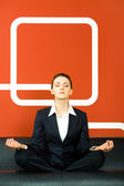 młoda kobieta siedzi w pozycji lotosu jogi z laptopa