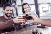 Grupa zachwycony pracowników mających reszta razem