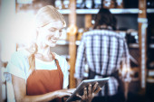Zdjęcie "Portret uśmiechnięty personel kobieta stojąc w organiczne części supermarket" może być wykorzystywane do celów osobistych i komercyjnych zgodnie z warunkami zakupionej licencji Royalty-free. Obraz jest dostępny do pobrania w jakości wysokiej rozdzielczości do 5760x3840.