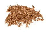 Kilka Kasza gryczana z bliska na biały. Widok z góry, na białym tle