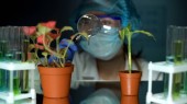 Naukowiec wstrzykiwanie genetycznie zmodyfikowanych cieczy w pieprzu, eksperymentu żywności