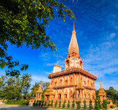 zachód słońca na pagoda świątyni Chalong. Wat Chalong jest największym i najbardziej szanowanych w Phuket