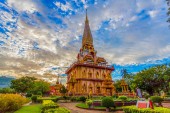 Zdjęcie "zachód słońca na pagoda świątyni Chalong. Wat Chalong jest największym i najbardziej szanowanych w Phuket" może być wykorzystywane do celów osobistych i komercyjnych zgodnie z warunkami zakupionej licencji Royalty-free. Obraz jest dostępny do pobrania w jakości wysokiej rozdzielczości do 5760x3840.