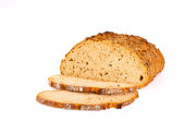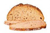 Jeden pojedynczy kromkę chleba na białym tle na białym tle, widok z góry bezpośrednio od góry.
