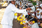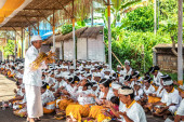 Bali, Indonezja - 9 października 2018: Davey na traitional Balijski hinduskiej ceremonii w Ubud.
