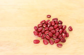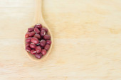 ziarna fasoli czerwonej łyżka warzyw natura na tle drewna