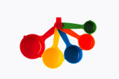 pomiaru plastikowe łyżki na białym tle