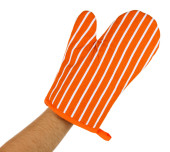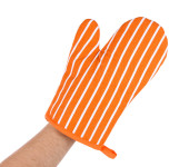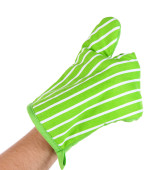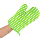 ręka z uchwyt do garnka na białym tle