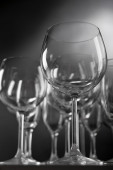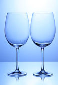 puste kieliszki, ułożone na niebieskim tle