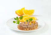 Zdjęcie "piękny starter brzoskwiń nadziewane z musem z tuńczyka i ozdobione orzechy włoskie zbliżenie na stole. poziomy widok z góry z przez rodzinę" może być wykorzystywane do celów osobistych i komercyjnych zgodnie z warunkami zakupionej licencji Royalty-free. Obraz jest dostępny do pobrania w jakości wysokiej rozdzielczości do 5760x3840.