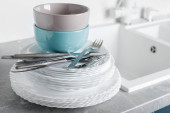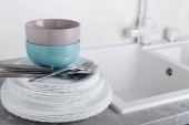 Zdjęcie "Suszarka do naczyń z czystego naczynia na stole w kuchni. Miejsca na tekst" może być wykorzystywane do celów osobistych i komercyjnych zgodnie z warunkami zakupionej licencji Royalty-free. Obraz jest dostępny do pobrania w jakości wysokiej rozdzielczości do 5760x3840.