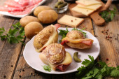 ziemniaków i raclette ser na talerzu w pobliżu składników