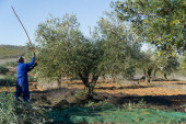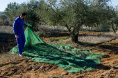 Netto Layed się pod Olive Tree dla zbiorów i kolekcji oliwek z drabiny drewniane