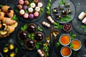 Zdjęcie "Kobiece ręce trzymać filiżankę herbaty na czarnym tle kamienia. Dzień dobry pomysł. Widok z góry" może być wykorzystywane do celów osobistych i komercyjnych zgodnie z warunkami zakupionej licencji Royalty-free. Obraz jest dostępny do pobrania w jakości wysokiej rozdzielczości do 5760x3840.