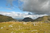 Mężczyzna turysta na zielonych wzgórzach krainy jezior, Wielka Brytania