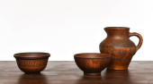 Zdjęcie "Gliniane i ceramiczne produkty na czarny drewniany stół. Home warsztat. Ręcznie robione rysunki i wzory." może być wykorzystywane do celów osobistych i komercyjnych zgodnie z warunkami zakupionej licencji Royalty-free. Obraz jest dostępny do pobrania w jakości wysokiej rozdzielczości do 5760x3840.