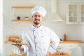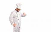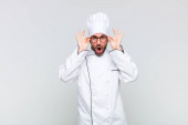 Zdjęcie "Zabawny wesoły kucharz w białej na tle tekst jednolity." może być wykorzystywane do celów osobistych i komercyjnych zgodnie z warunkami zakupionej licencji Royalty-free. Obraz jest dostępny do pobrania w jakości wysokiej rozdzielczości do 5760x3840.