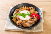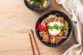 miska ryżu wieprzowego z jajkiem (Donburi) - japoński styl jedzenia