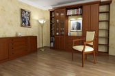 Luksusowa sypialnia z dwoma łóżkami pojedynczymi w stylu klasycznym. Regał, Tv i toaletkę. renderowania 3D.