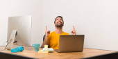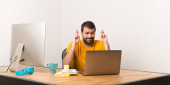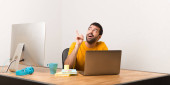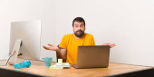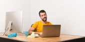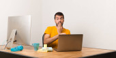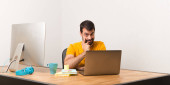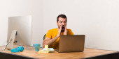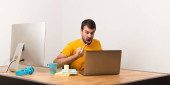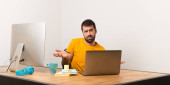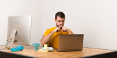 Zdenerwowany mężczyzna pracujący z laptot w biurze
