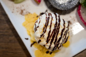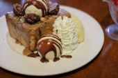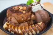 Honey toast lub cegły tosty z waniliowych lodów i bitą śmietaną