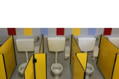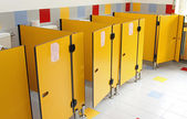 małe toielette przedszkola bez dzieci z żółtymi drzwiami