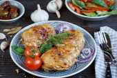 Zdrowa żywność - grillowany kurczak z warzywami na płycie