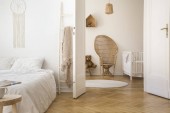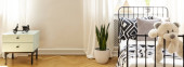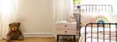 Zdjęcie "Kolorowe poduszki na dziecięce łóżko w sypialni białe wnętrze z gabinetu i kopiować miejsca. Prawdziwe zdjęcie" może być wykorzystywane do celów osobistych i komercyjnych zgodnie z warunkami zakupionej licencji Royalty-free. Obraz jest dostępny do pobrania w jakości wysokiej rozdzielczości do 5760x3840.