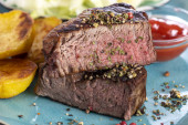 Zdjęcie "zbliżenie grillowanego steku z frytkami " może być wykorzystywane do celów osobistych i komercyjnych zgodnie z warunkami zakupionej licencji Royalty-free. Obraz jest dostępny do pobrania w jakości wysokiej rozdzielczości do 5760x3840.