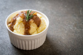 Zdjęcie "domowe puree ziemniaczane z sosem sosem sosowym" może być wykorzystywane do celów osobistych i komercyjnych zgodnie z warunkami zakupionej licencji Royalty-free. Obraz jest dostępny do pobrania w jakości wysokiej rozdzielczości do 5760x3840.