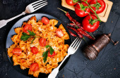 Zdjęcie "zbliżenie ugotowany makaron z sosem pomidorowym i serem na ciemnym tle" może być wykorzystywane do celów osobistych i komercyjnych zgodnie z warunkami zakupionej licencji Royalty-free. Obraz jest dostępny do pobrania w jakości wysokiej rozdzielczości do 5760x3840.