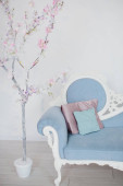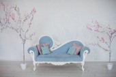 Luksusowy wystrój z światła dziennego. Nowoczesne studio fotograficzne. Wiosenne światło pokoju studio wnętrz.