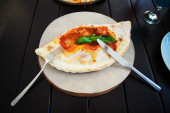 Zdjęcie "Turecki i arabski tradycyjnych Ramadan Pide z jajkiem na wierzchu. Podłoże drewniane. Pizza Margherita jest typowe neapolitańskie, wykonane z pomidory, mozzarella, świeża bazylia, oliwa z oliwek pierwszego tłoczenia i soli." może być wykorzystywane do celów osobistych i komercyjnych zgodnie z warunkami zakupionej licencji Royalty-free. Obraz jest dostępny do pobrania w jakości wysokiej rozdzielczości do 5760x3840.